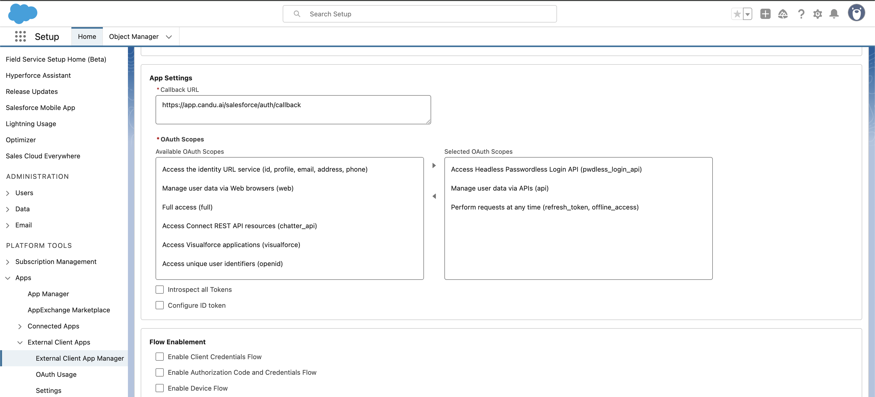 Callback URL: https://app.candu.ai/salesforce/auth/callback