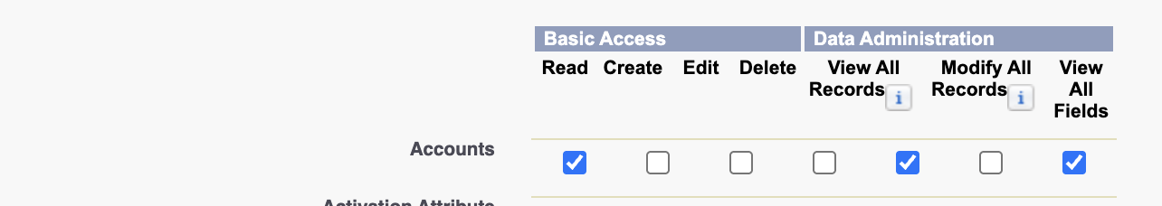 - Accounts: Read, View All Records, View All Fields
