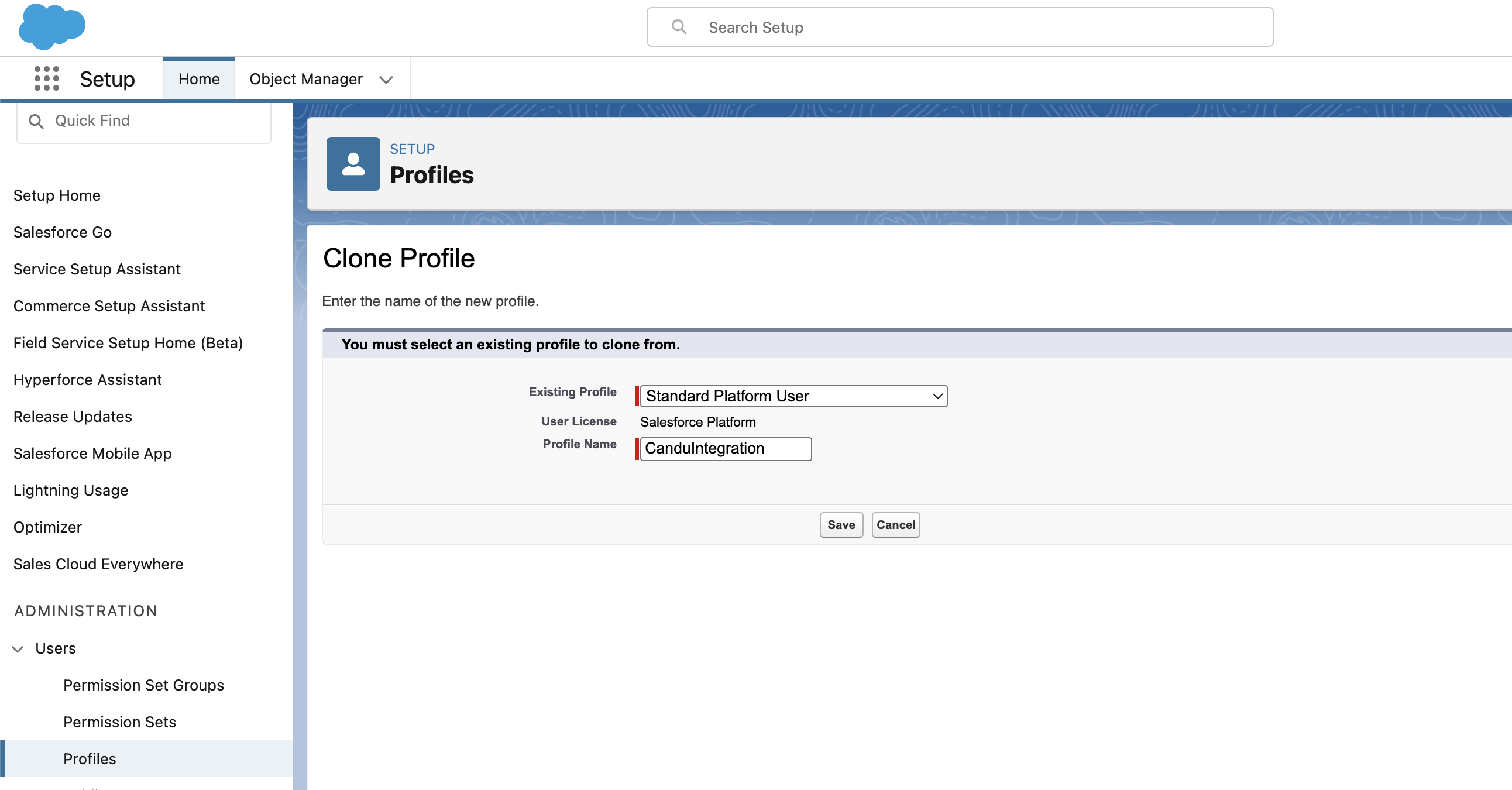 - Integration User Setup