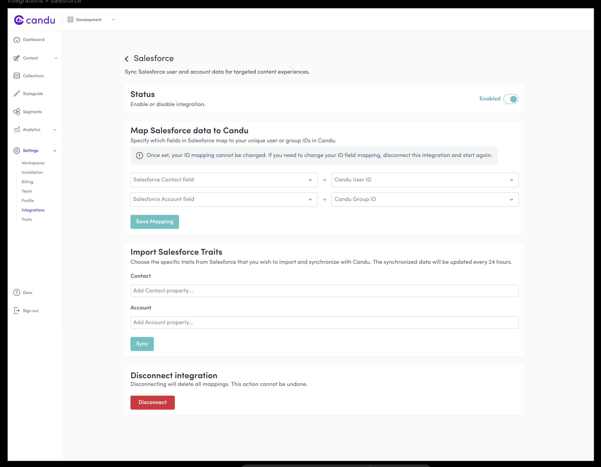 Once initial set up is performed, you'll be able to manage your integration via the Candu dashboard.