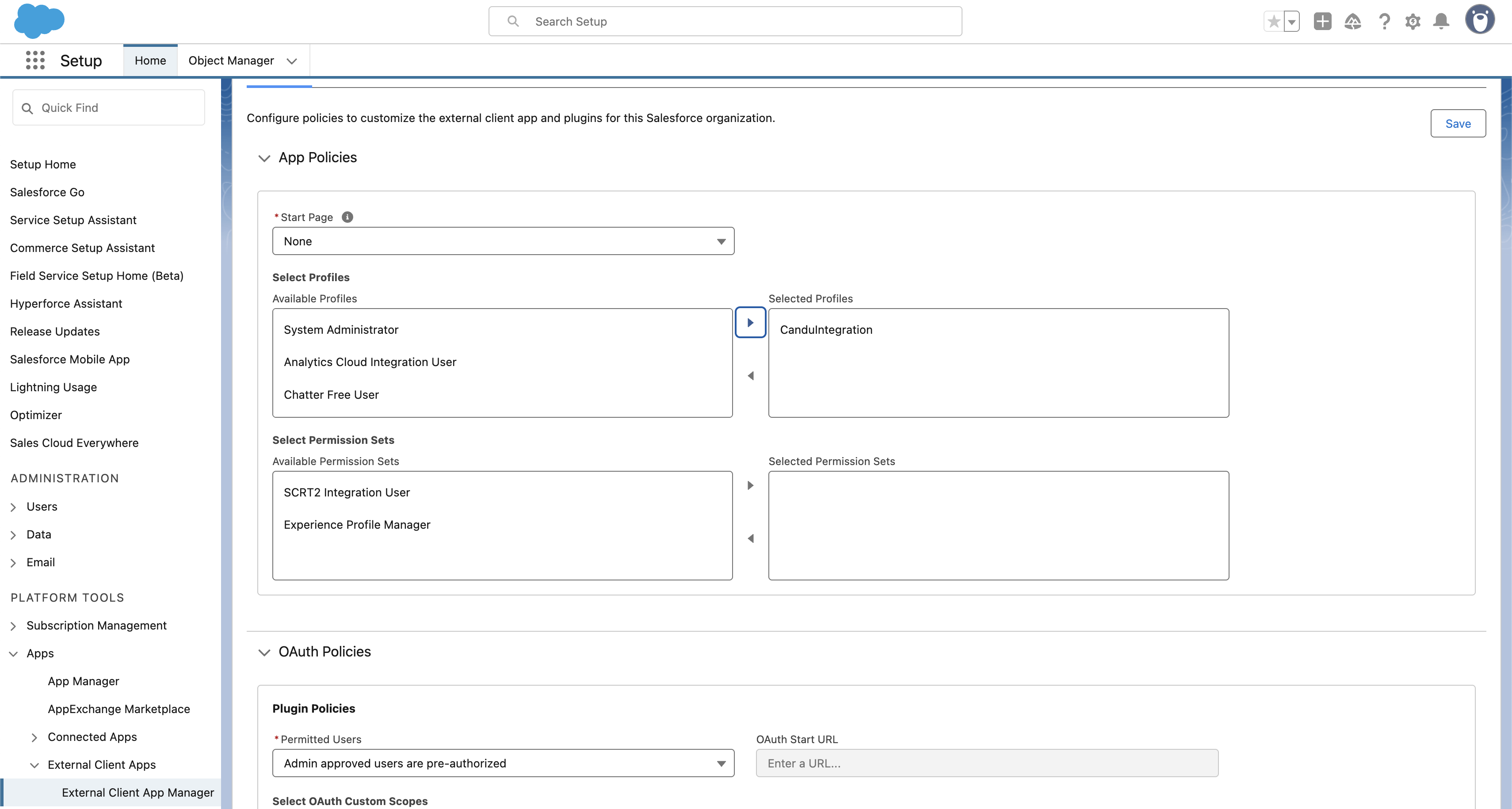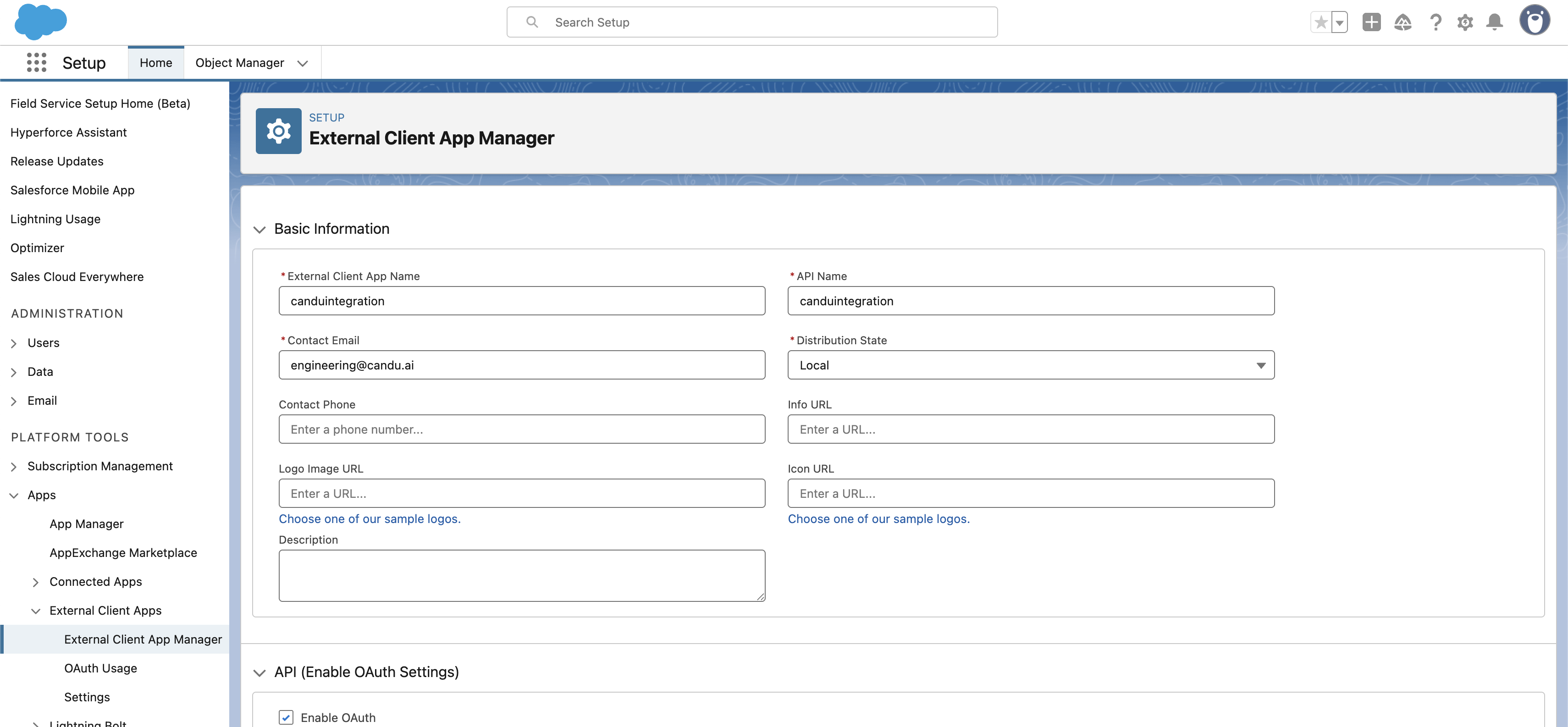 Next we'll set up an External Client App - usually in Apps -> External Client Apps -> External Client App Manager